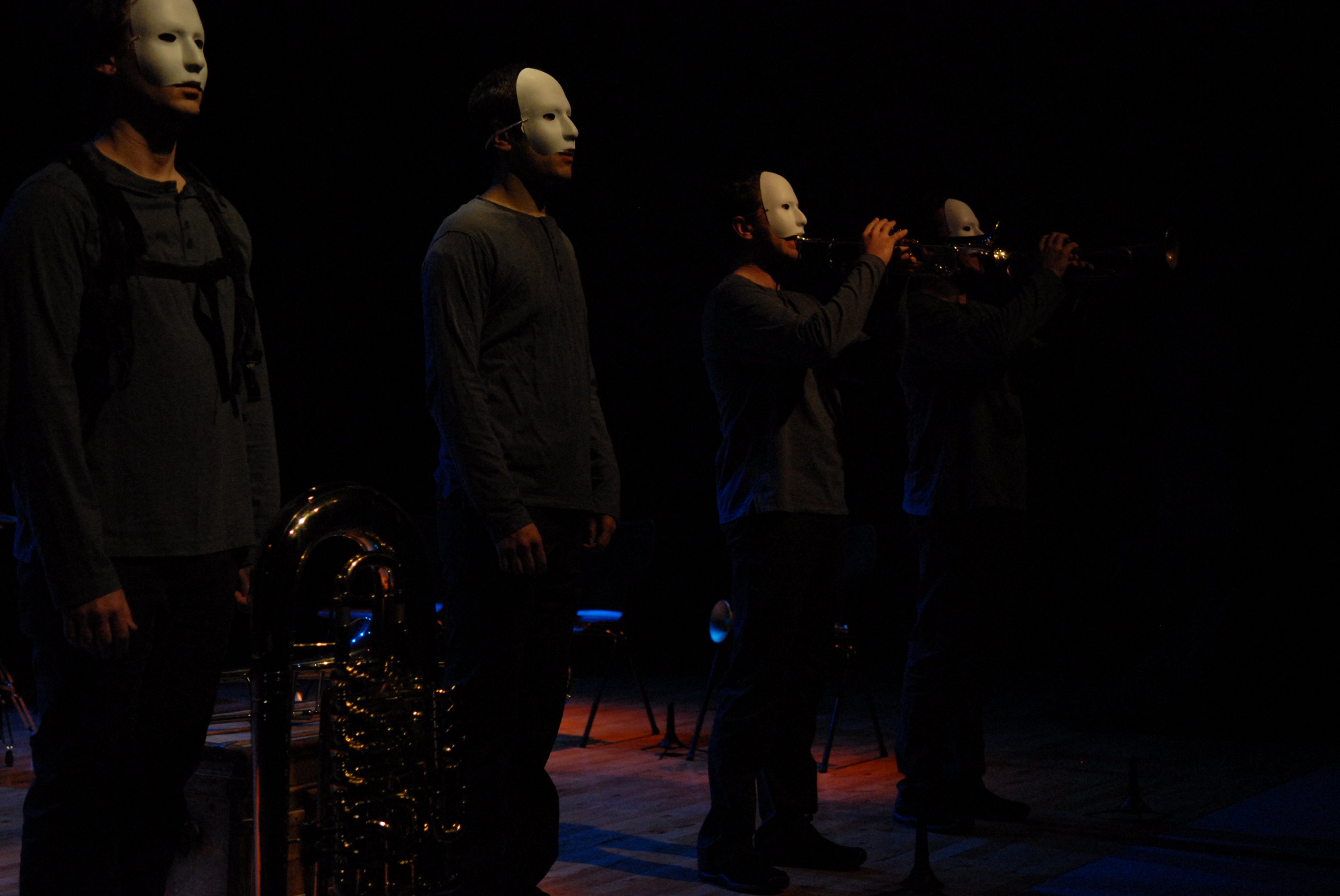 Serge Folie choisit, à partir du « Pavillon des Masques » d’utiliser d’emblée une mise en espace autour de sa fantaisie sonore lui permettant ainsi d’aborder la polyvalence des musiciens, celle des styles abordés, celle des techniques de compositions, et enfin celle des textes ça et là insérés.