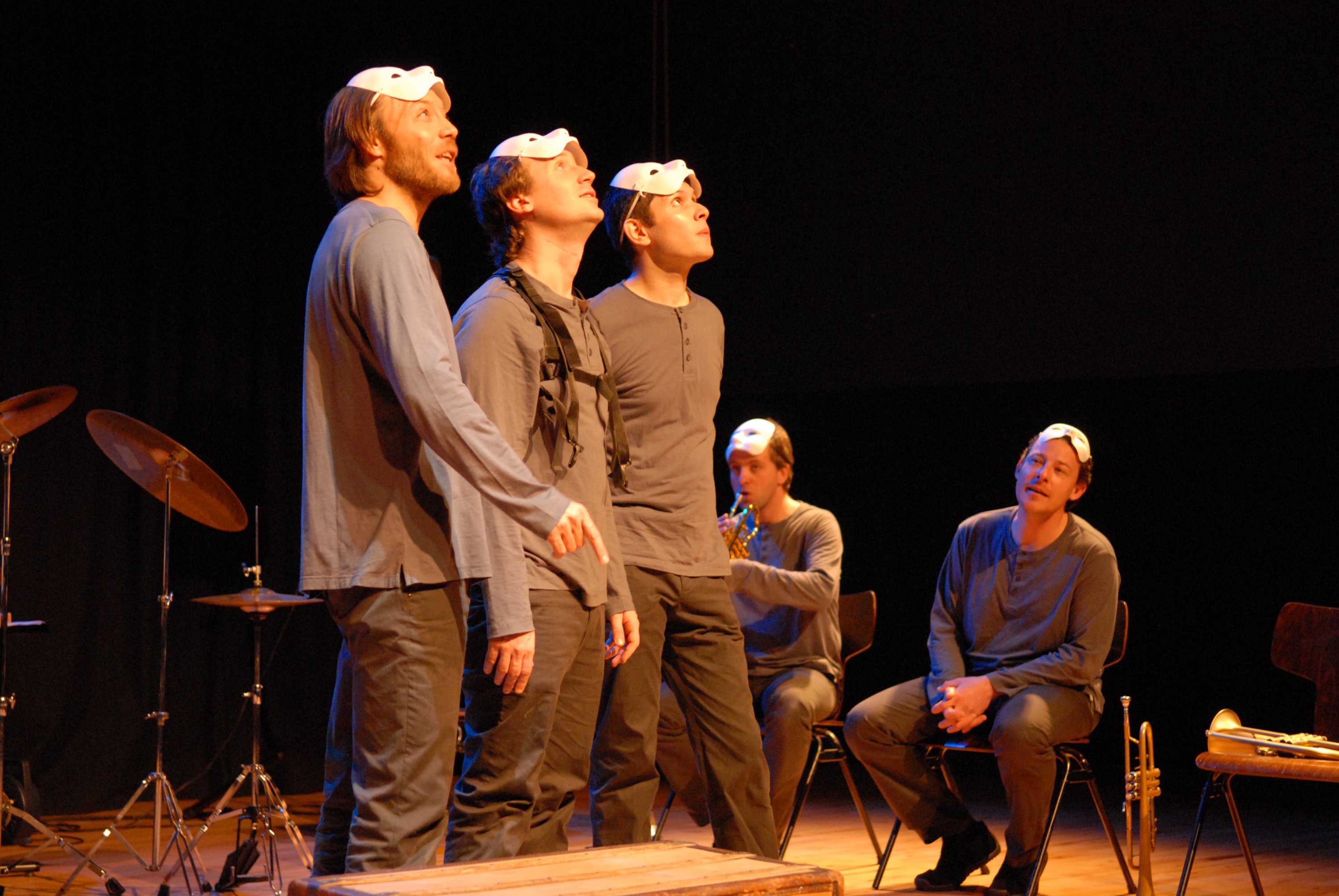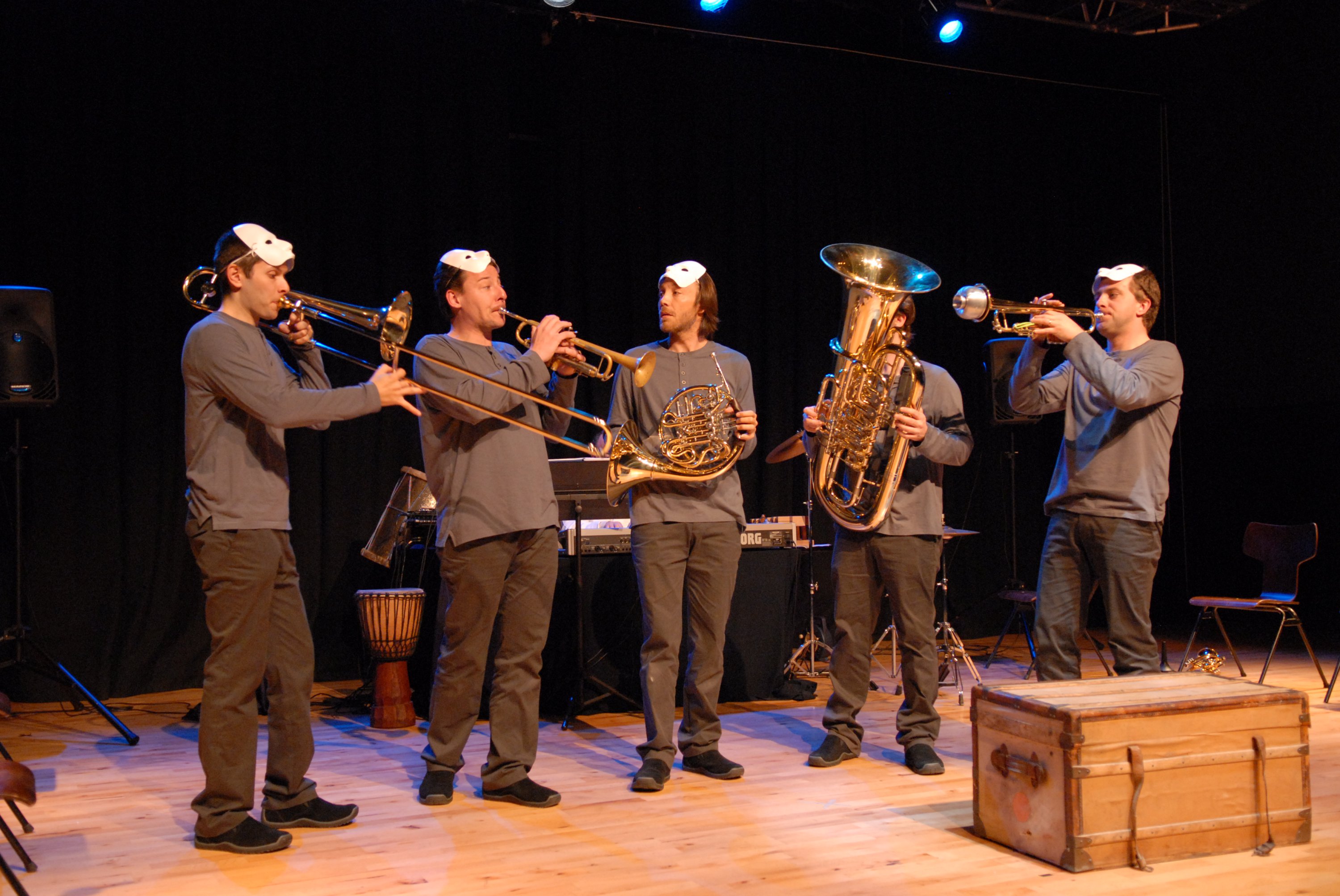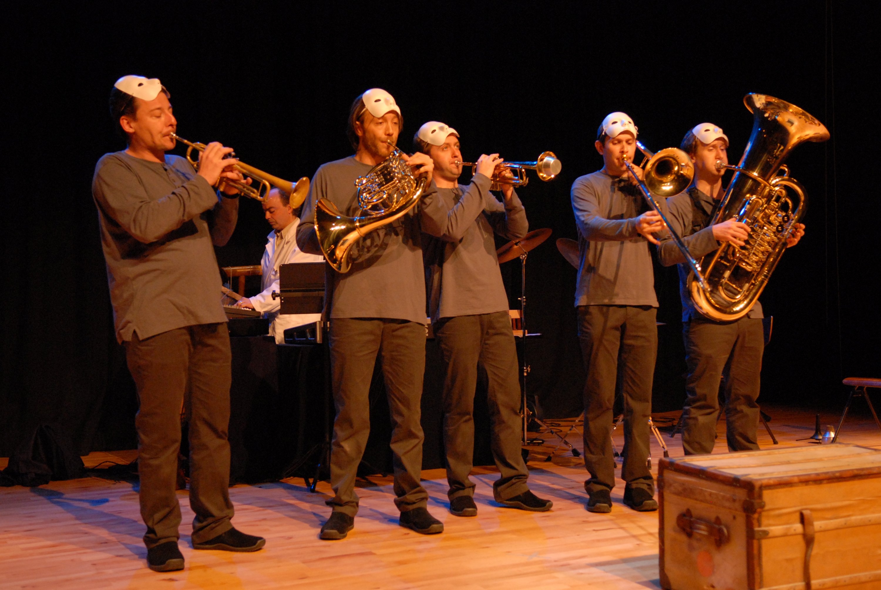 Dans l’univers imaginaire du Pavillon, les personnages tombent les masques de leur quotidien et, tour à tour cuivres, conteurs, percussionnistes, nous promènent de l’autre côté…, là où la vie était plus colorée…, là où la musique habitait chaque instant et où poésie, rythmes passionnés et souvenirs s’entremêlaient pour nous décrire comme une lueur en équilibre.